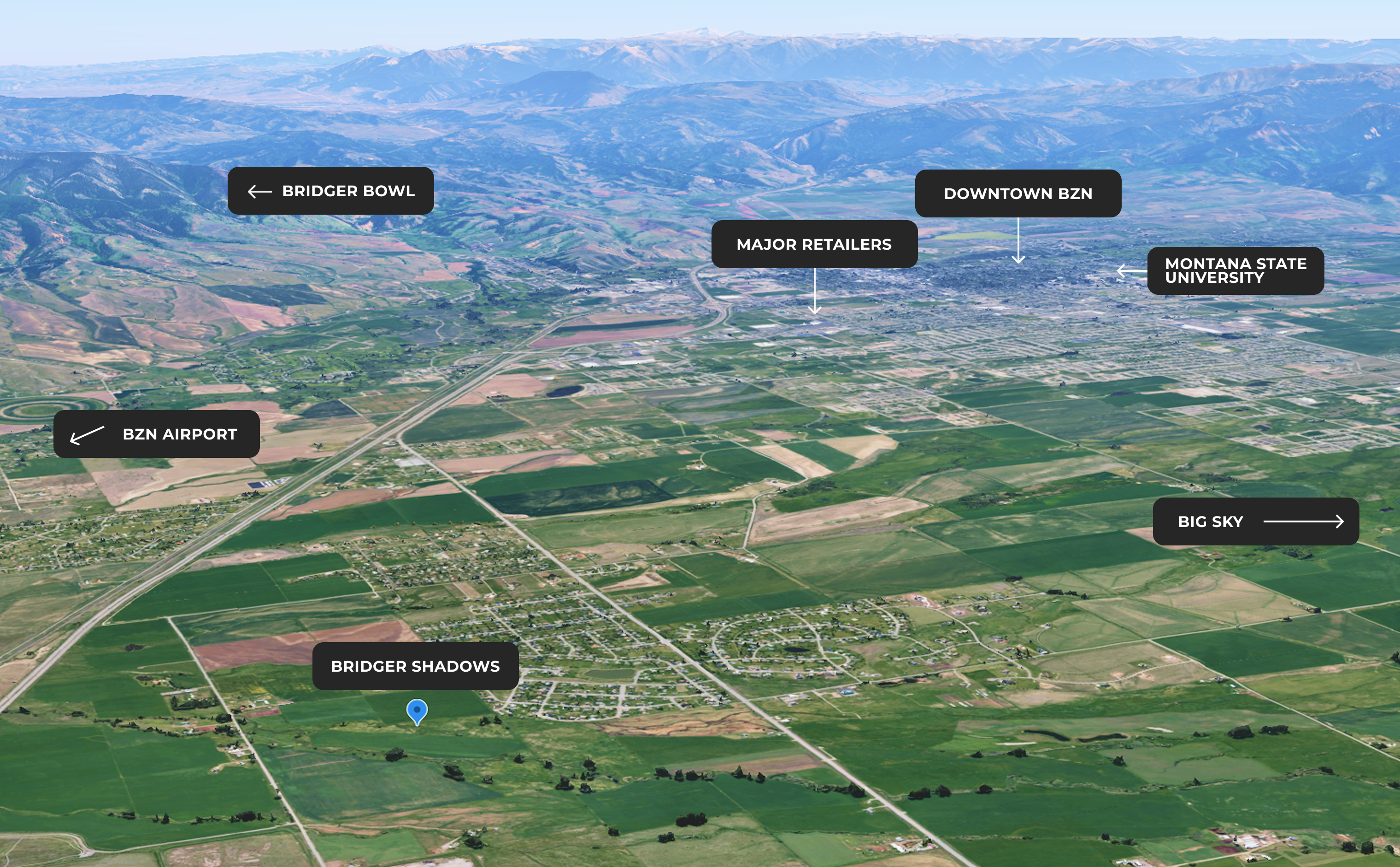 Located between Bozeman and Belgrade with a Bozeman address, Bridger Shadows places you close to the best of both worlds.